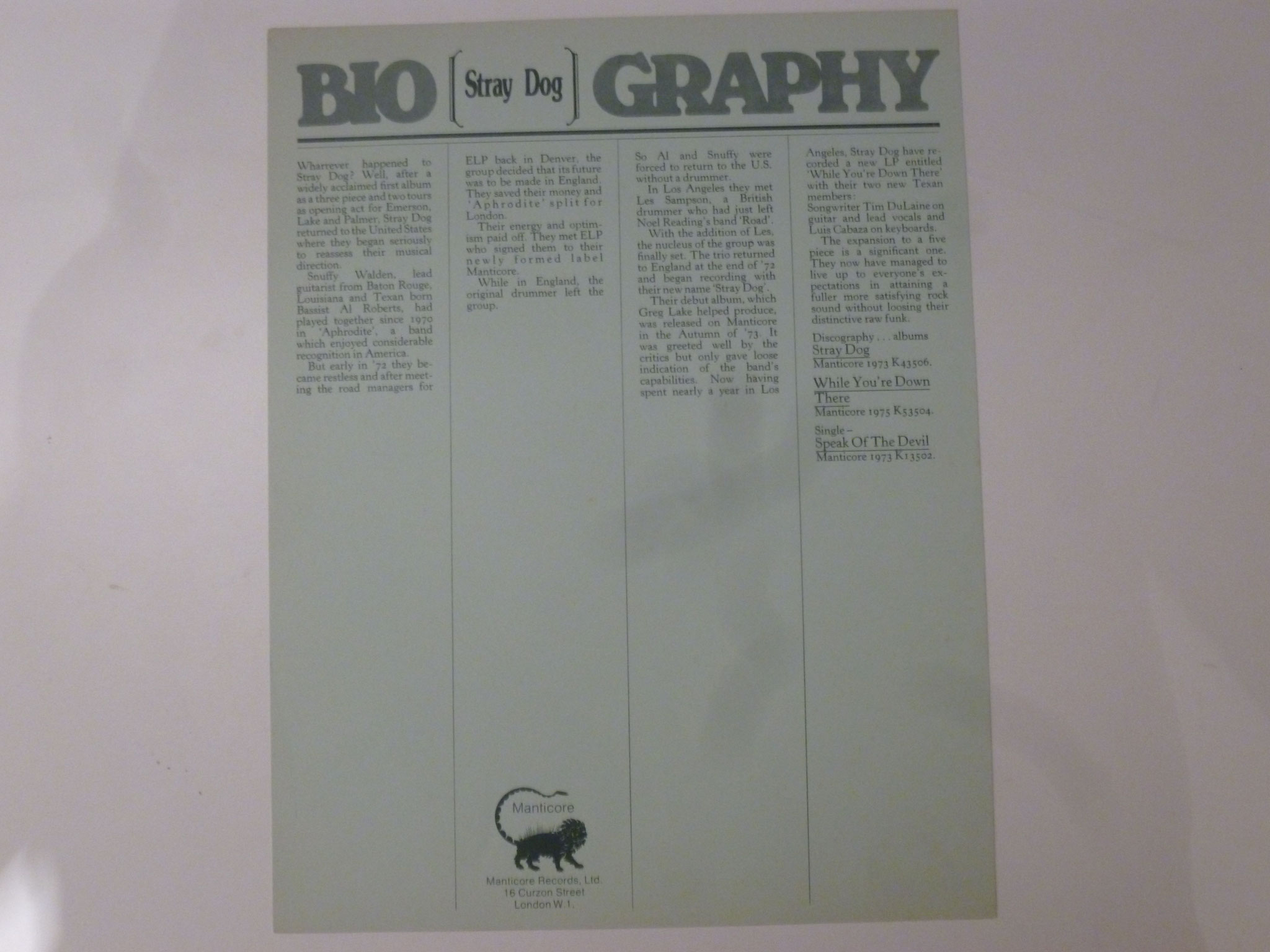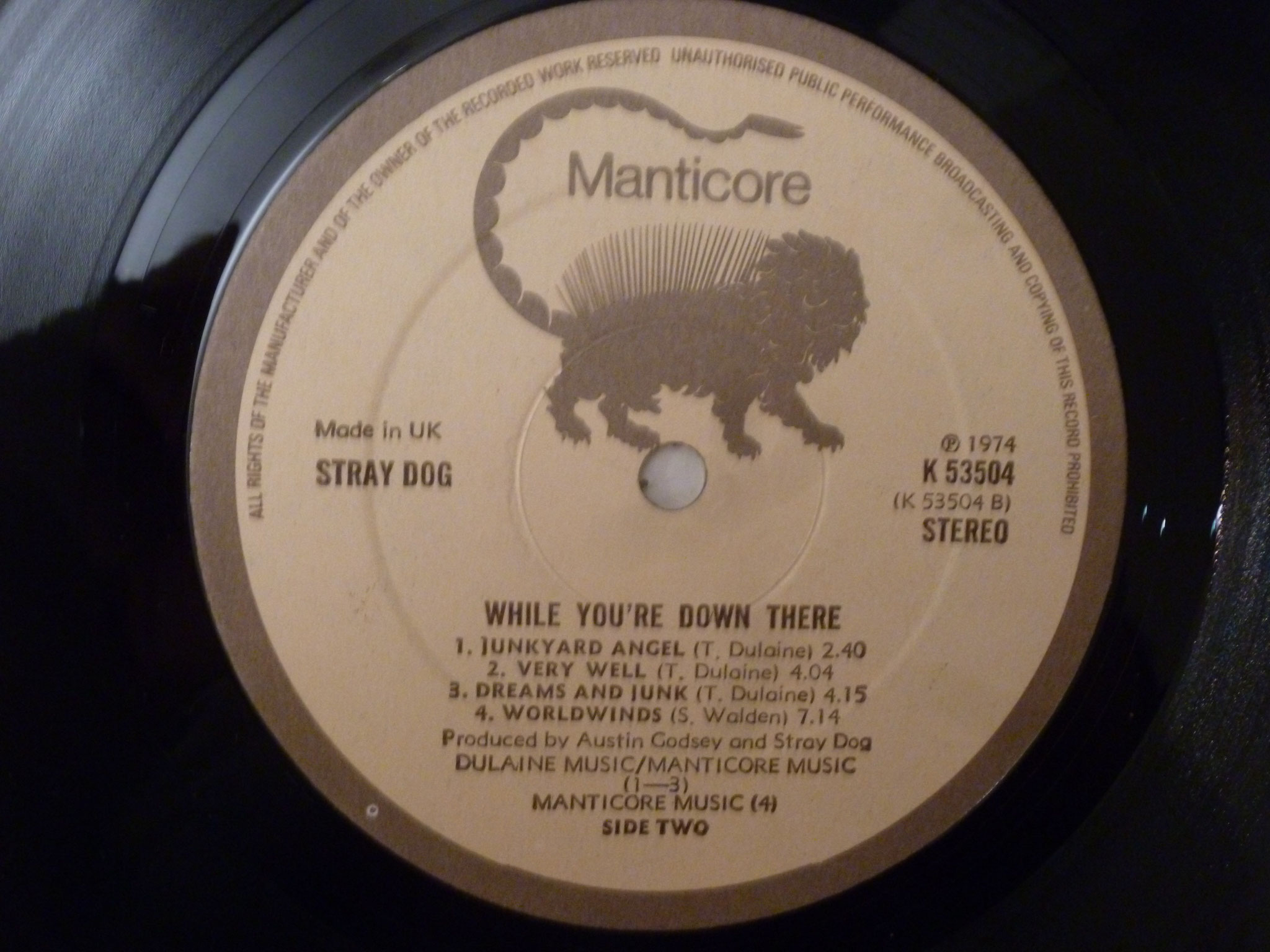 A1/B1 'Kendun'MST' matrix on jet black glossy vinyl. 2NM Manticore labels. Generic inner sleeve. VG+ original Stray Dogs Biography. Sleeve has small seam split to top edge otherwise VG+.