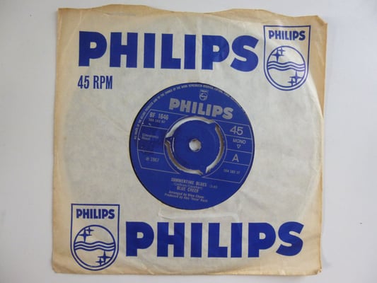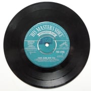 RARE: Glossy black vinyl. 2VG+ Pye labels with pushout centre intact. G+ blue Pye die-cut company sleeve. We uploaded the photos to Discogs, this is the actual 7" we have for sale. Playgraded; A side plays G+, B side plays VG