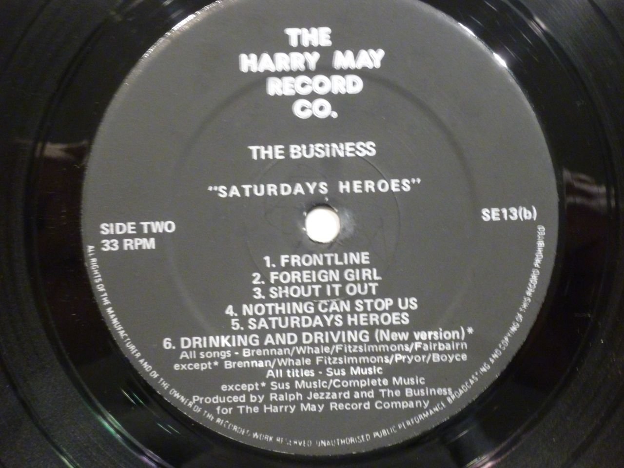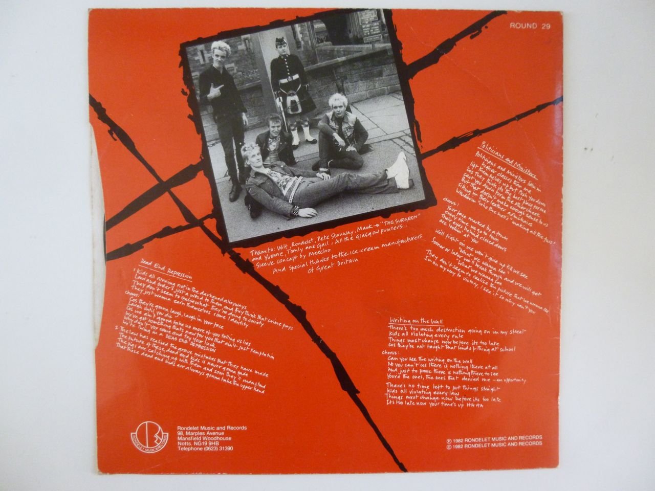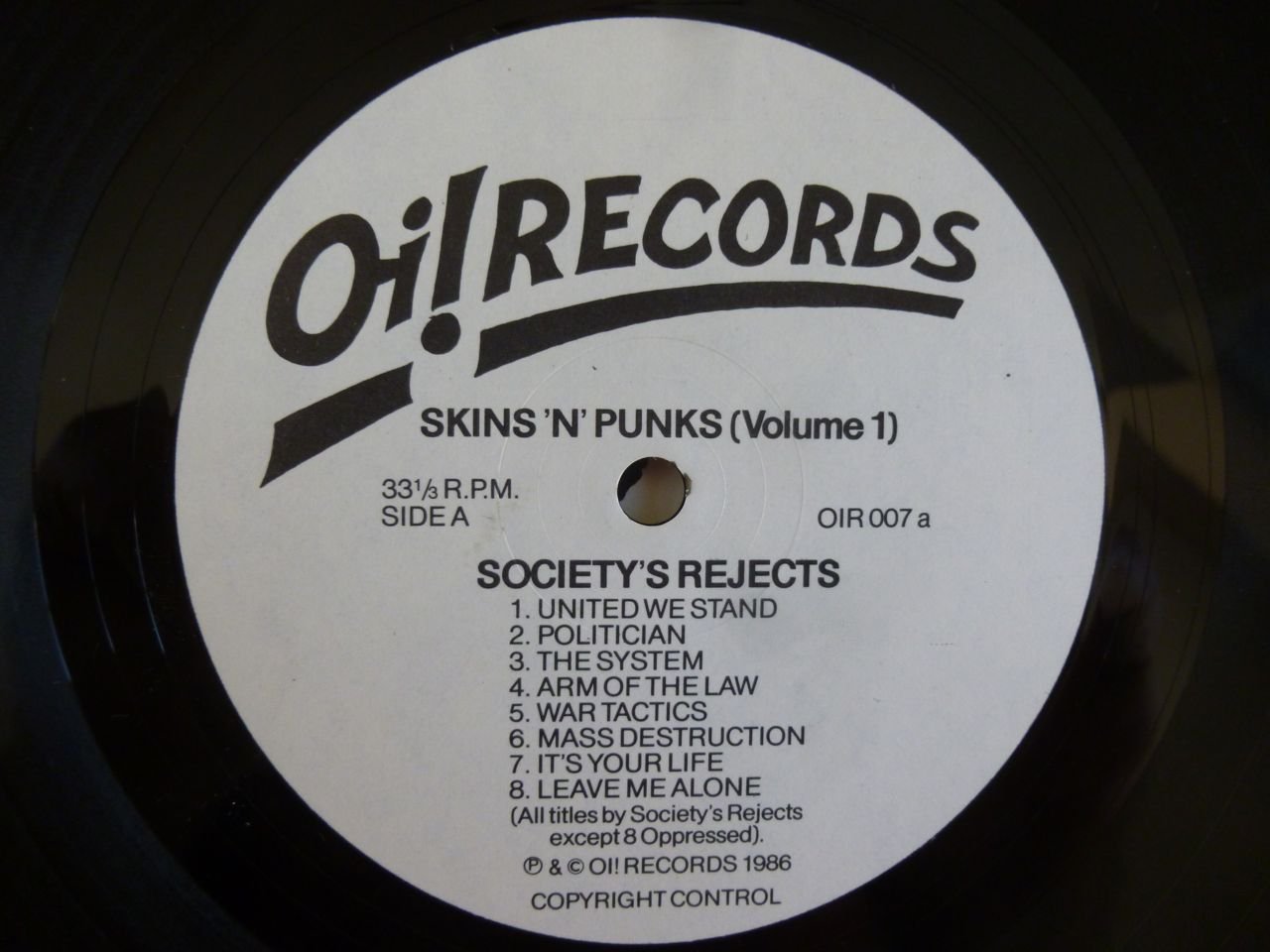 Black glossy vinyl. 2NM Oi! Records labels. Generic inner sleeve. VG+ original outer sleeve with 2cm seam split to top edge.