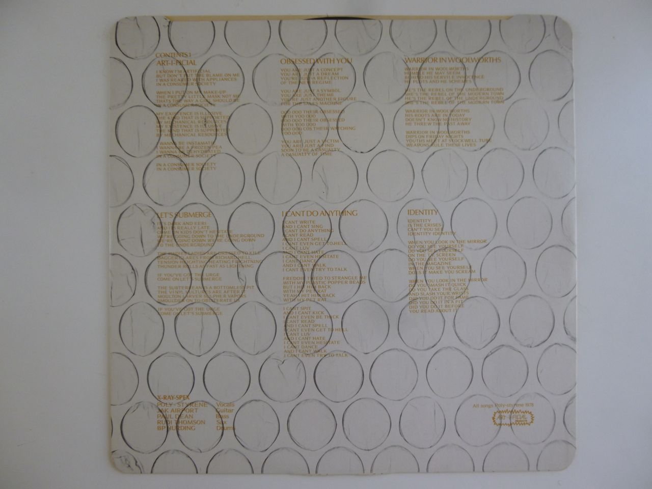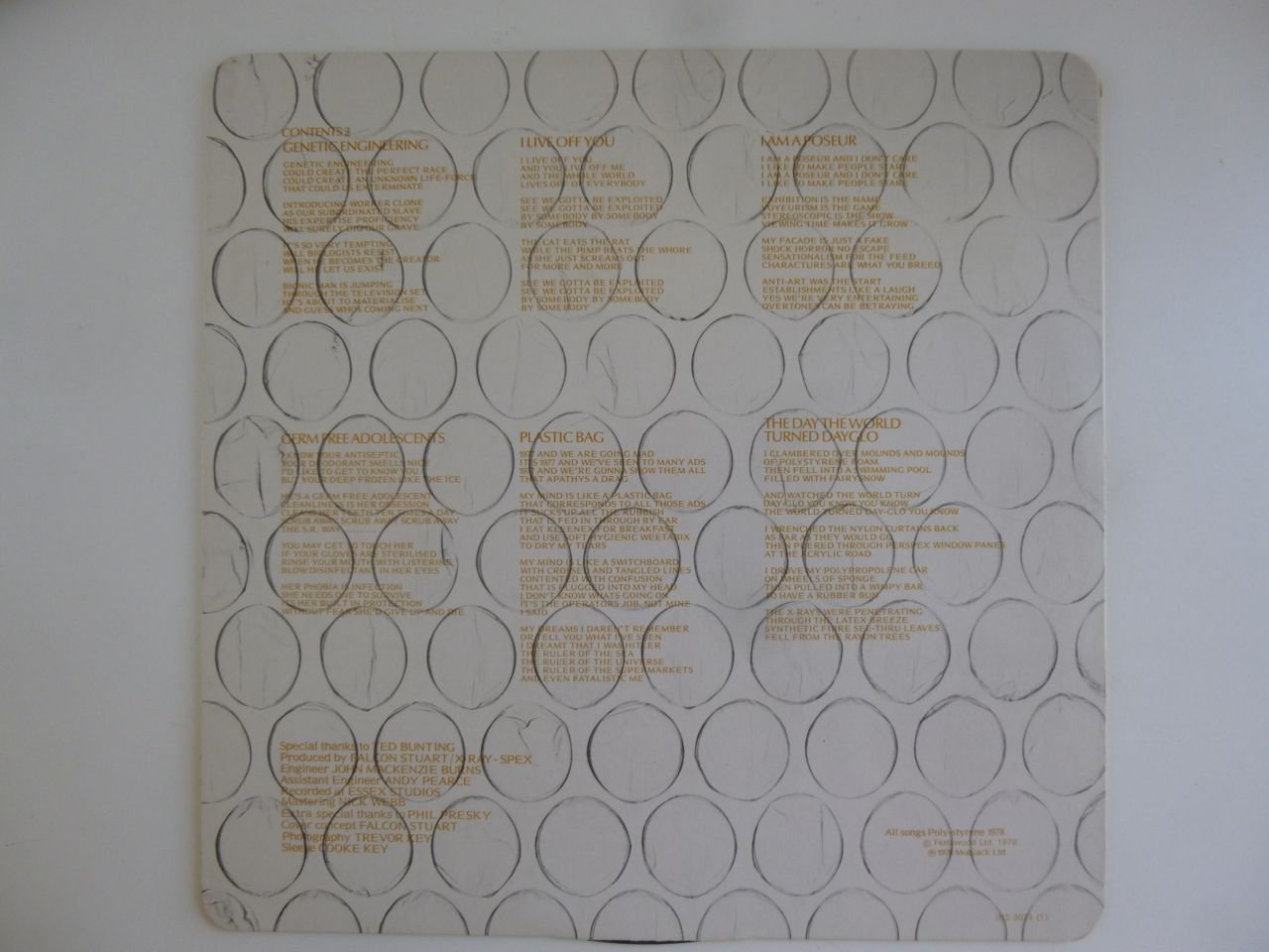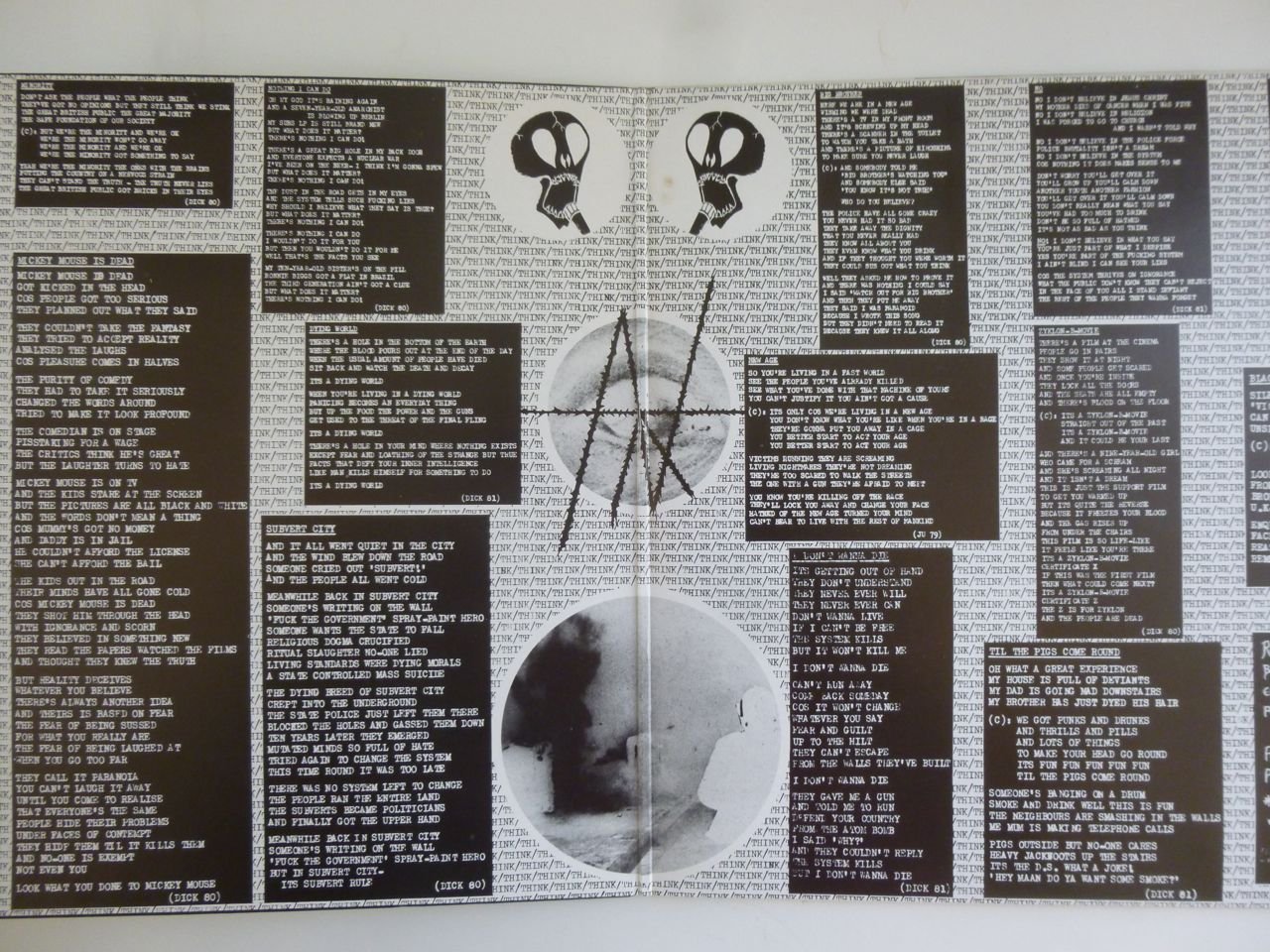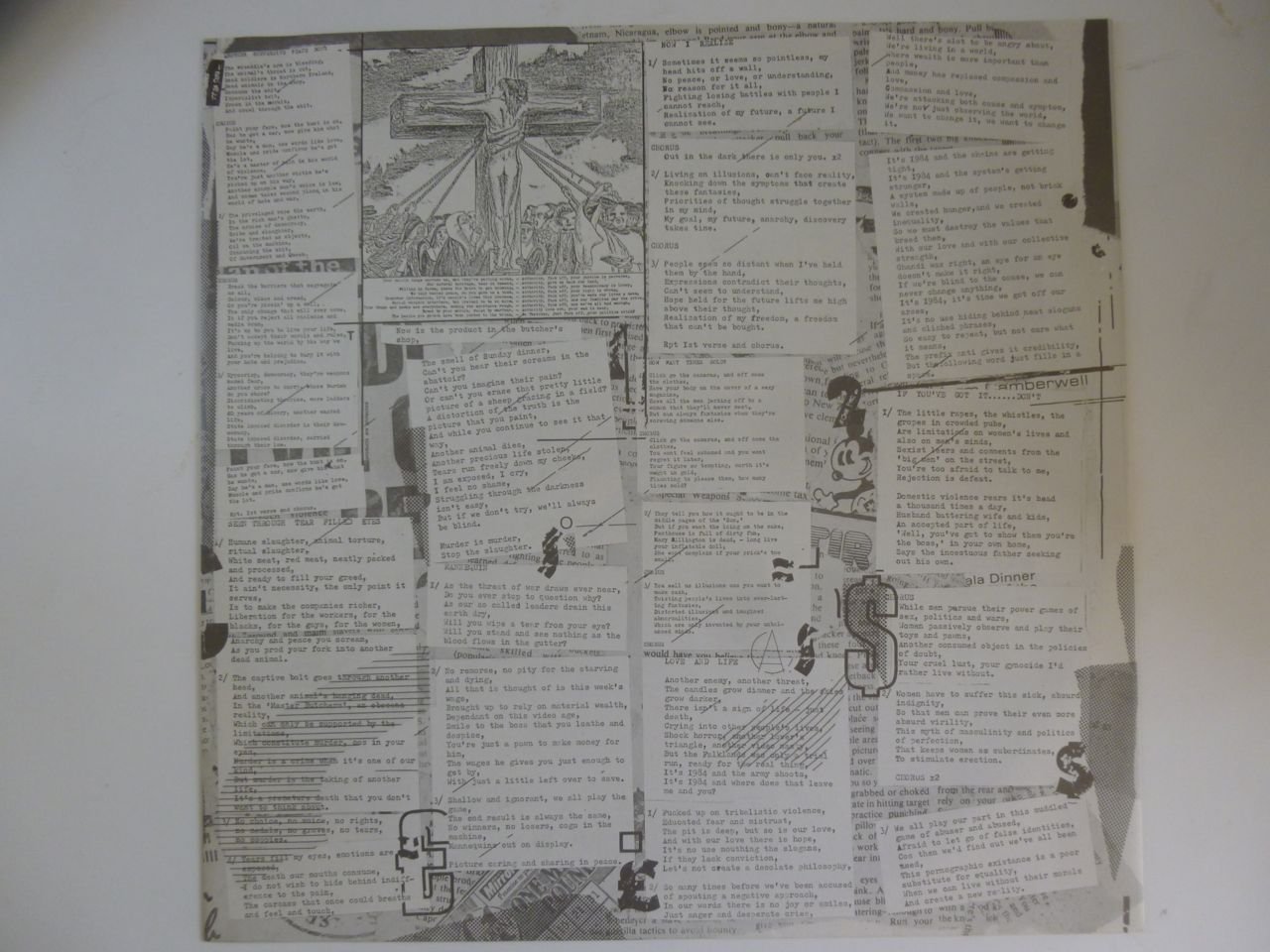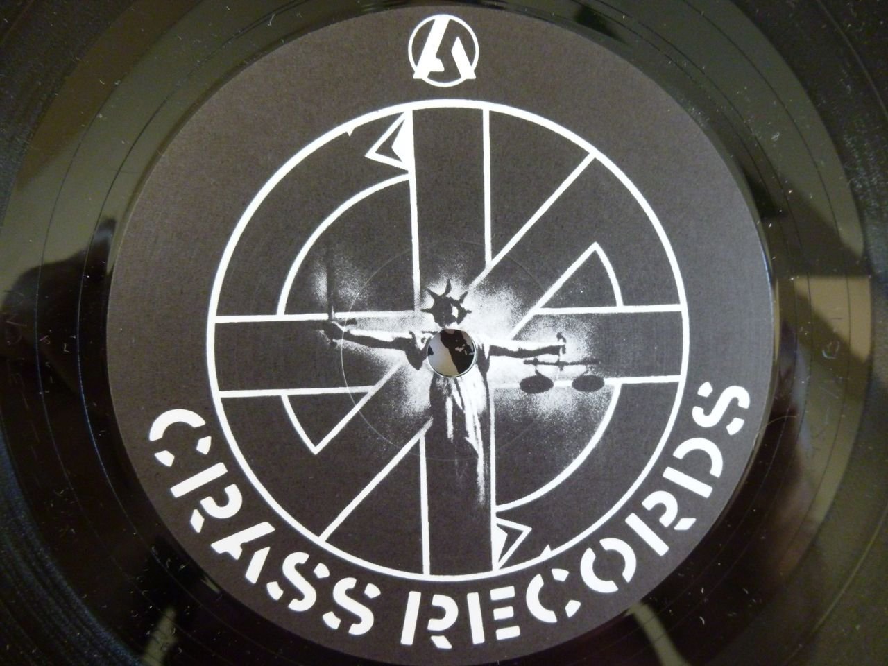 Jet black glossy vinyl. 2NM Crass labels. Generic inner sleeve. VG+ original fold-out poster sleeve.