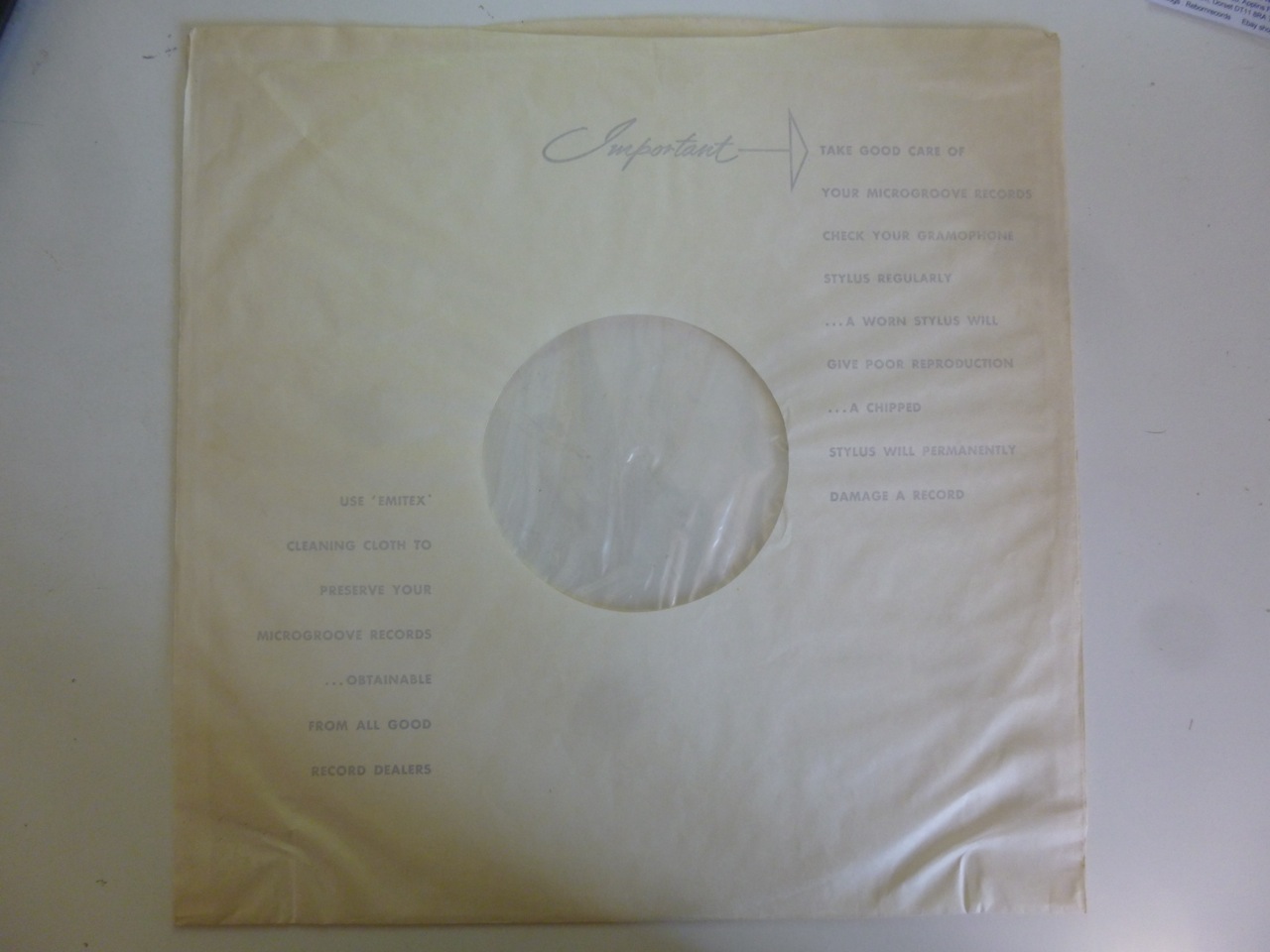 Glossy black vinyl. 2NM Parlophone labels. Original Emitex inner sleeve. G+ outer sleeve.