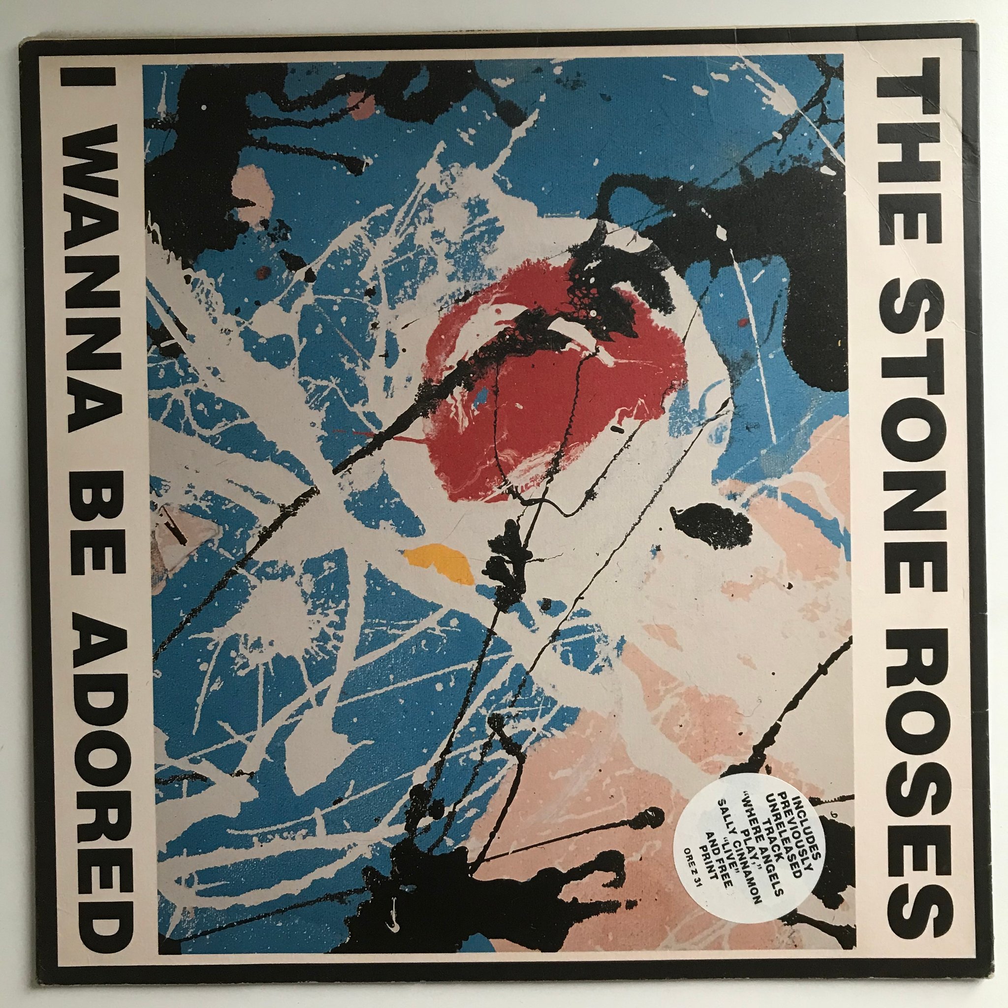 With Art Print:- Glossy black vinyl. 2NM Silvertone Labels. VG+ Original sleeve with 5cm seam split to top edge. VG+ 12"x12" John Squire Art Print.